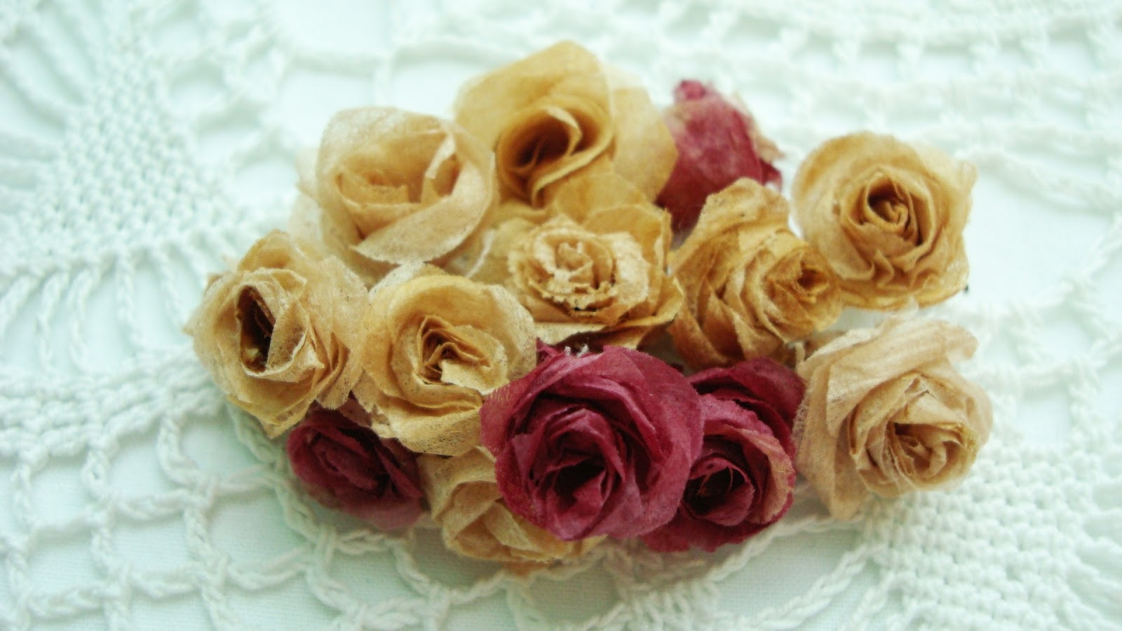 УдалитьО, какая ты умница! Цветы замечательные, и уверена - превосходно украсят твои работы! На последнем фото смотрятся так винтажненько) Если еще подкрасишь в некоторых местах белым - мне кажется, вообще будет настоящий винтаж!